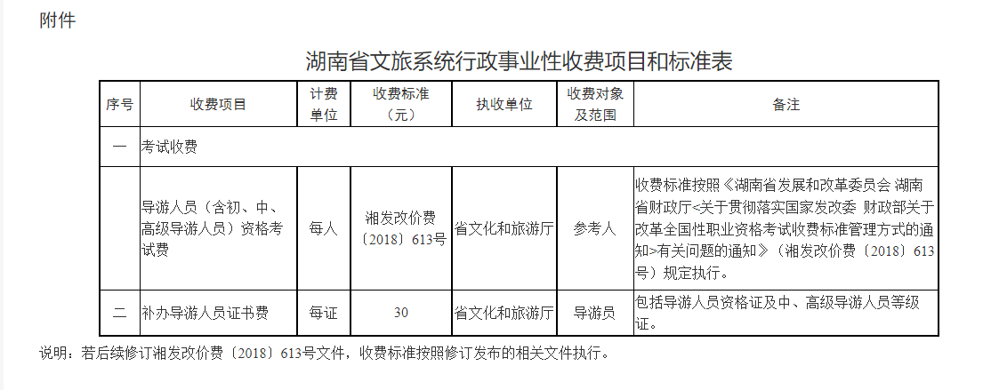 一、全省文旅系统行政事业性收费一律按本次公布的项目和标准执行,具体收费标准见附表。