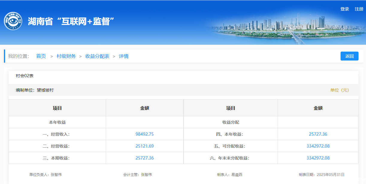 2025年5月望城坡村村级财务收益分配明细