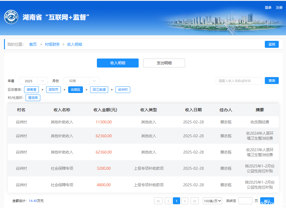 2025年2月谷洲村村级财务收入明细