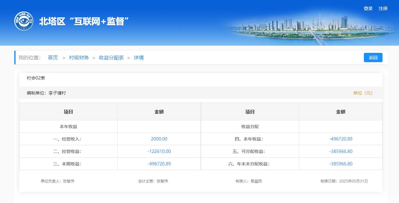 2025年5月李子塘村村级财务收益分配明细