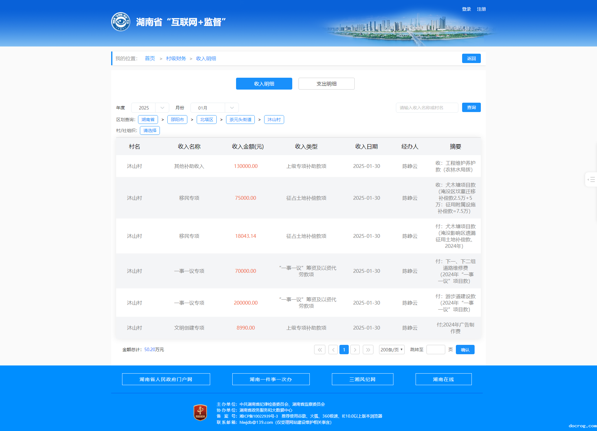 2025年1月沐三村村级财务收入明细