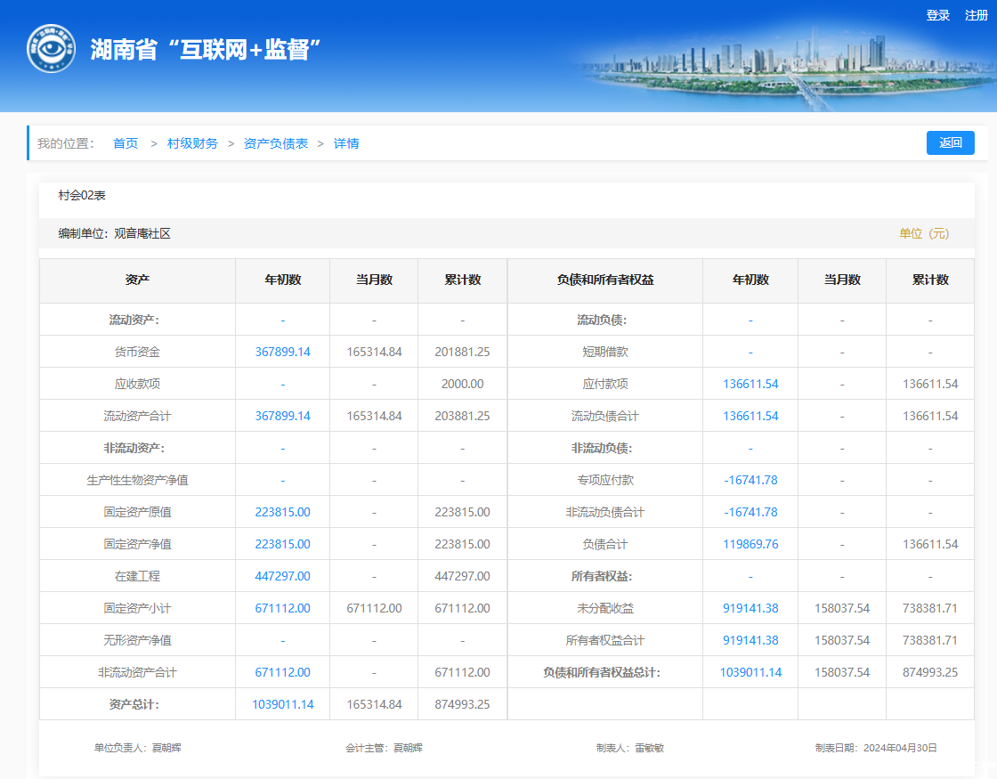 2025年3月观音庵社区村级财务资产负债明细