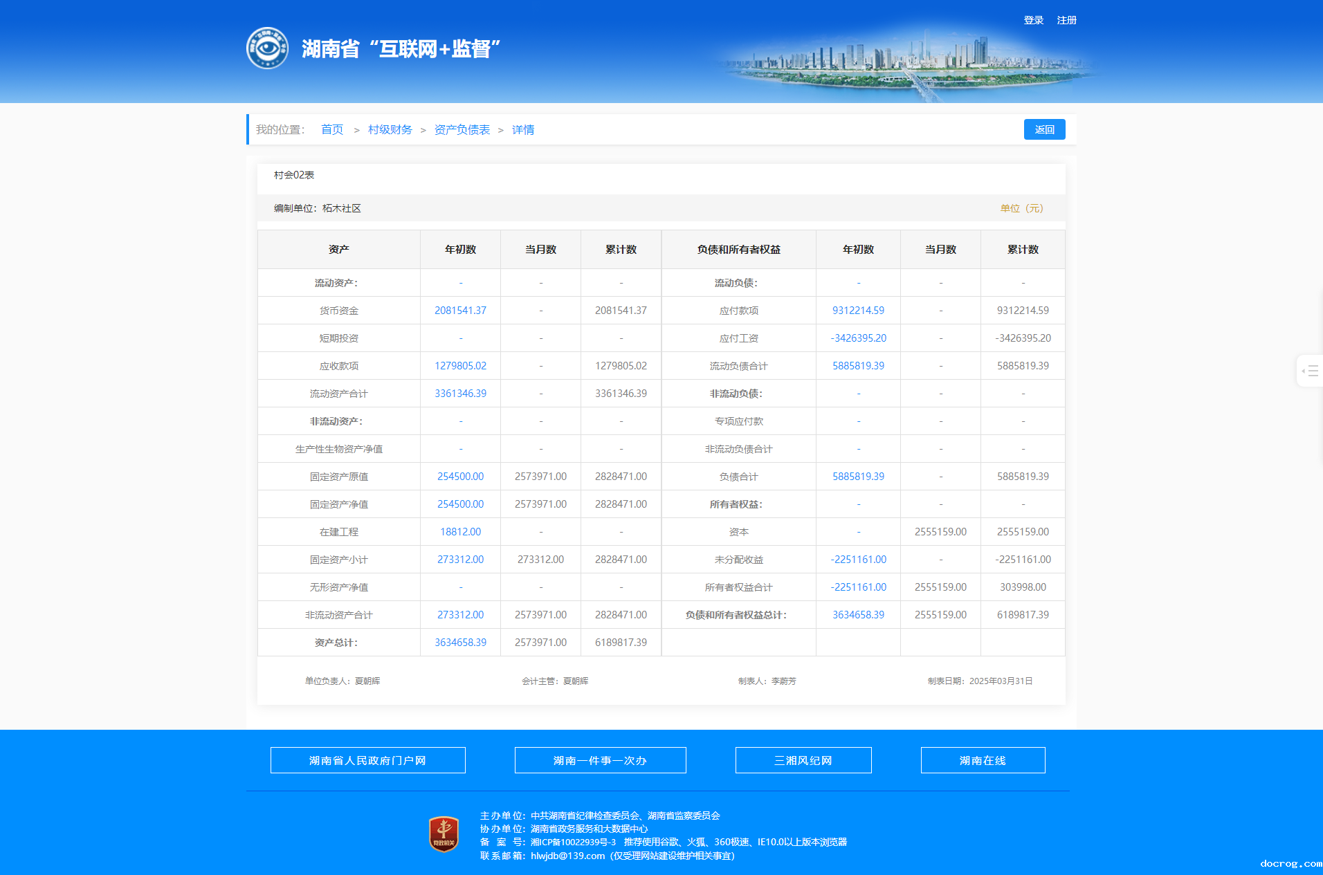 2025年1月柘木社区村级财务资产负债明细