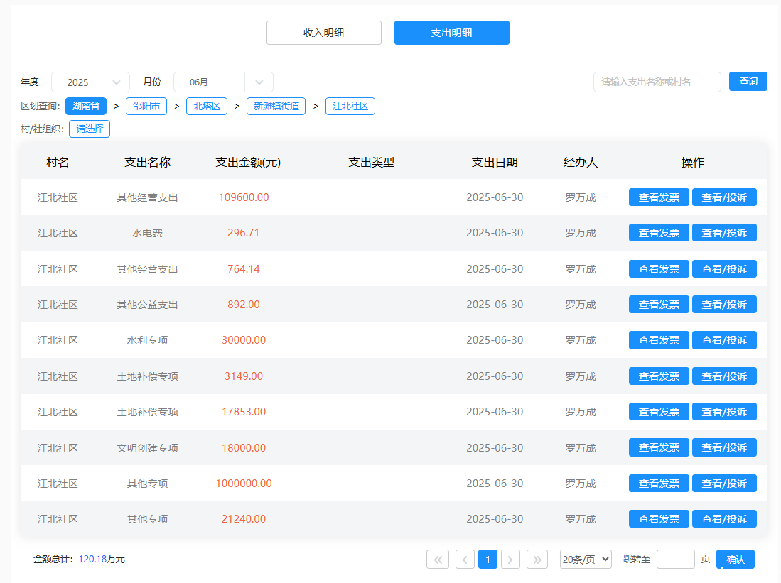 2025年6月江北社区村级财务支出明细