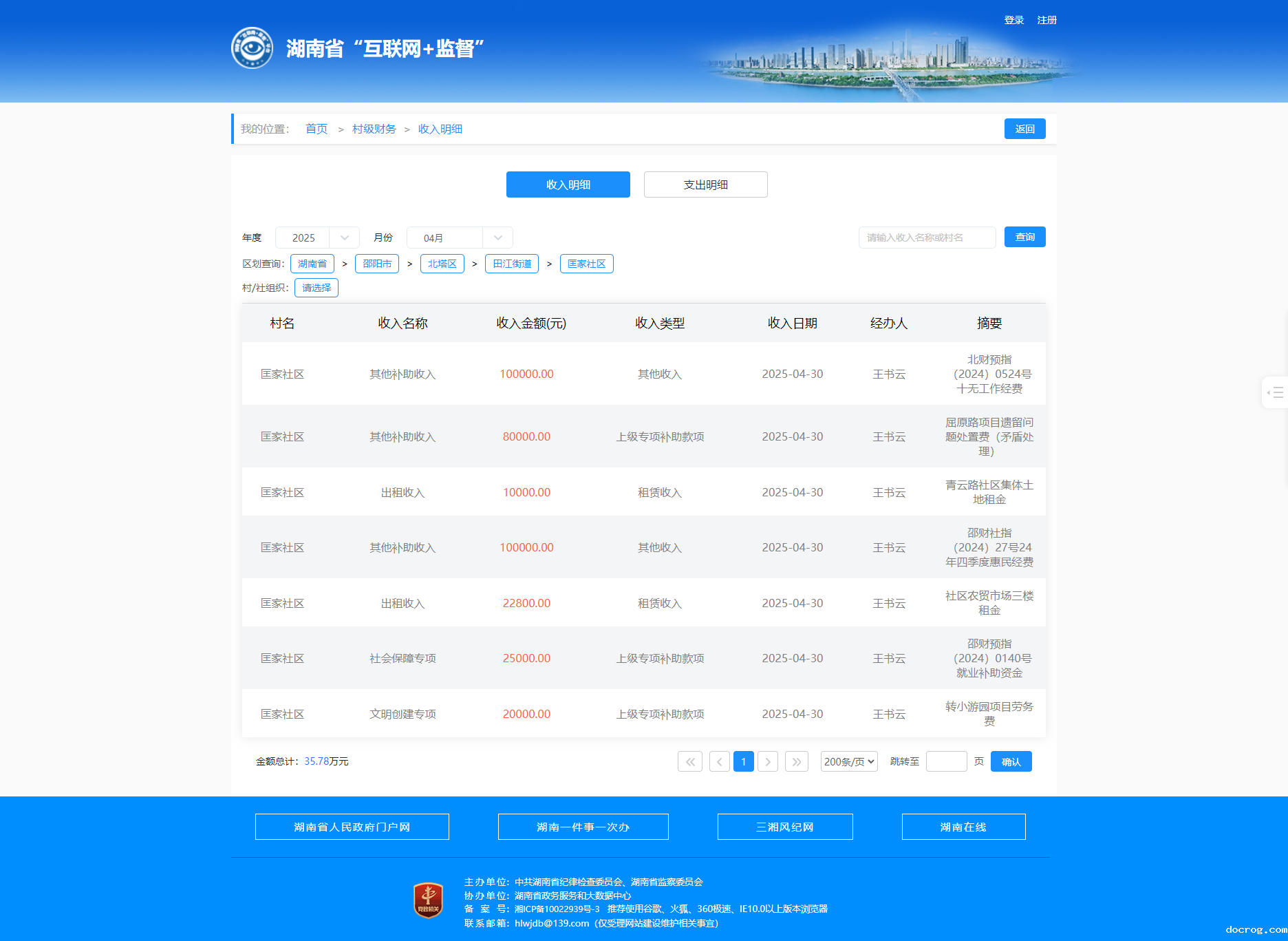 2025年4月匡家社区村级财务收入明细