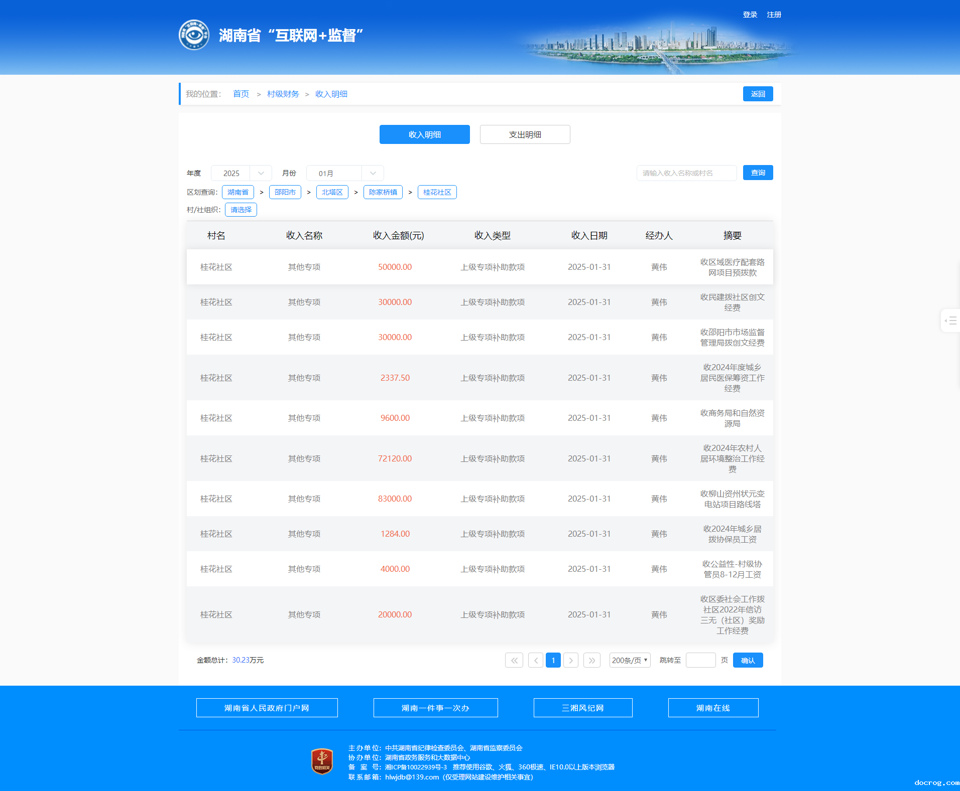 2025年1月桂花社区村级财务收入明细