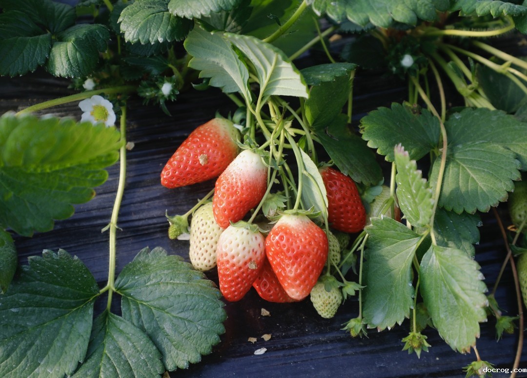 一行行草莓植株郁郁葱葱,整齐排列在田垄之上。翠绿的叶子舒展着,恰似一把把玲珑剔透的翡翠小扇子,在微风轻抚下轻轻摇曳,发出沙沙的声响。这里草莓品种多样,包括玫瑰、巧克力、水蜜桃等,果实个头大,甜度刚好,酸甜的汁水在口中四散,每一口都能吃到甜蜜;这里草莓品质优良,均采用高标准的自然农法种植,无农残、无催熟剂,最大程度保证草莓味道醇郁、天然安全。