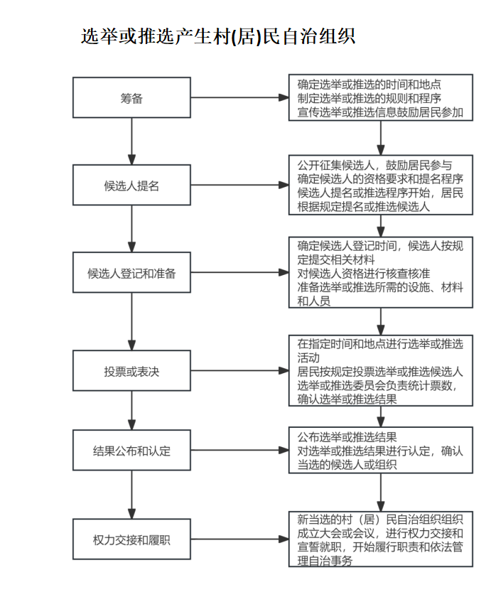 选举或推选产生村(居)民自治组织工作流程图